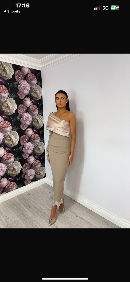 Rhinestone Mesh Off-Shoulder Midi Dress 254913