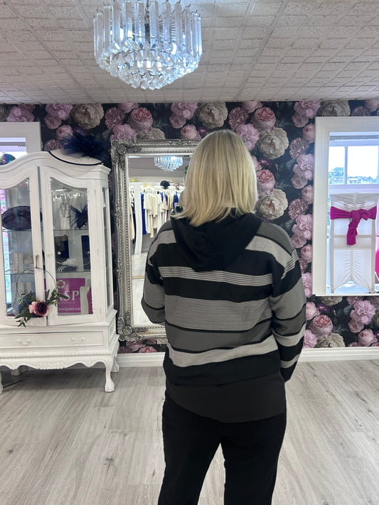 Frank Lyman Black Knit Zip Jacket with Quilted Trim
