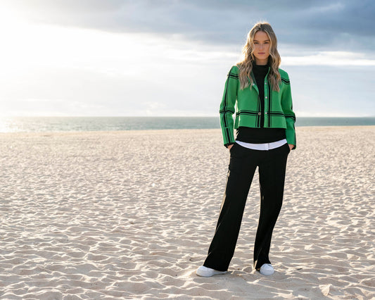 Marble Cropped Check Knit Jacket – Style 8111 (Green/Black)