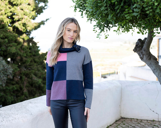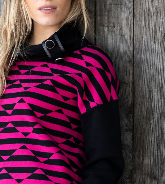 Marble 8106 Sweater – Colour 126 Pink & Black Geometric Knit