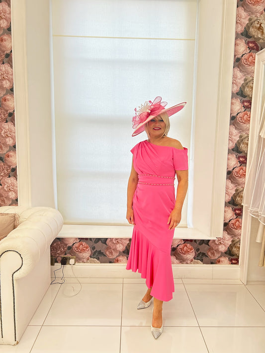John Charles 66513 Midi Dress With Asymmetric Neckline And Fluted Skirt in Tulip - 66513 SALE!