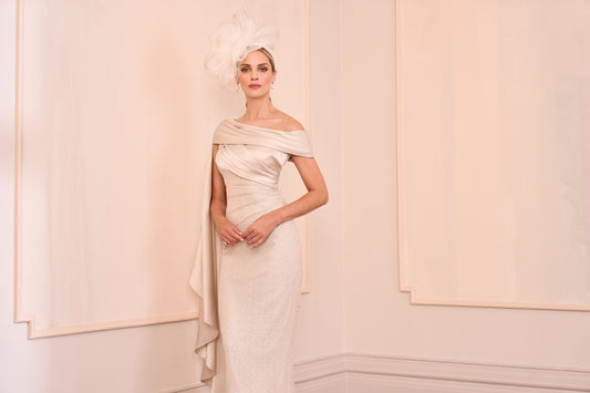 Soft pink A-line dress with back bow detailing. Mother of the bride/groom/special occasion