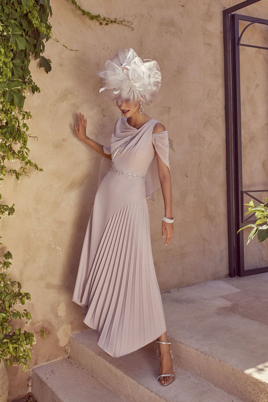 Mother of the bride and groom/special occasion.Spft pink dress with cape .