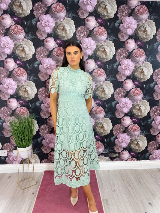 Aqua Ruffle Stretch Dress – By Swan Paris