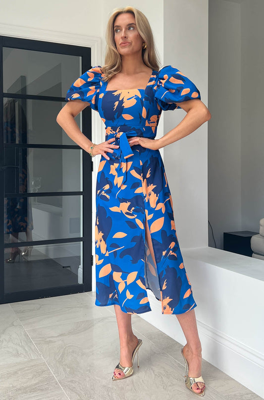 Rose blue multi print dress