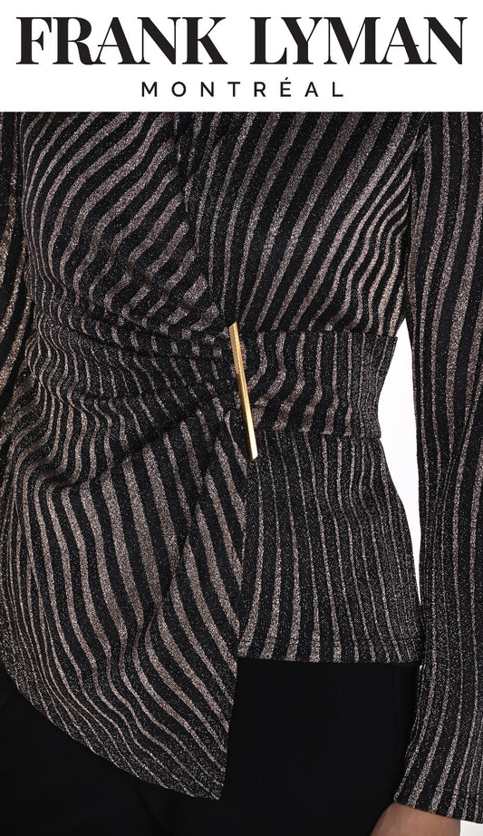 : Frank Lyman Black & Gold Metallic Wrap Top