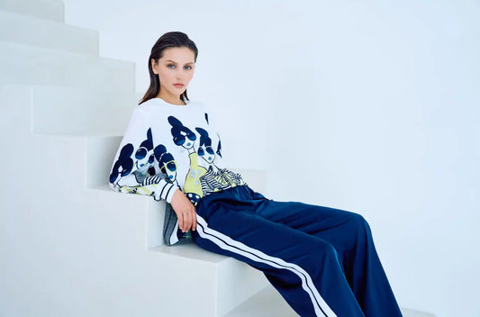 TUZZI 411.658 Diva state of mind- Navy wide leg track bottoms