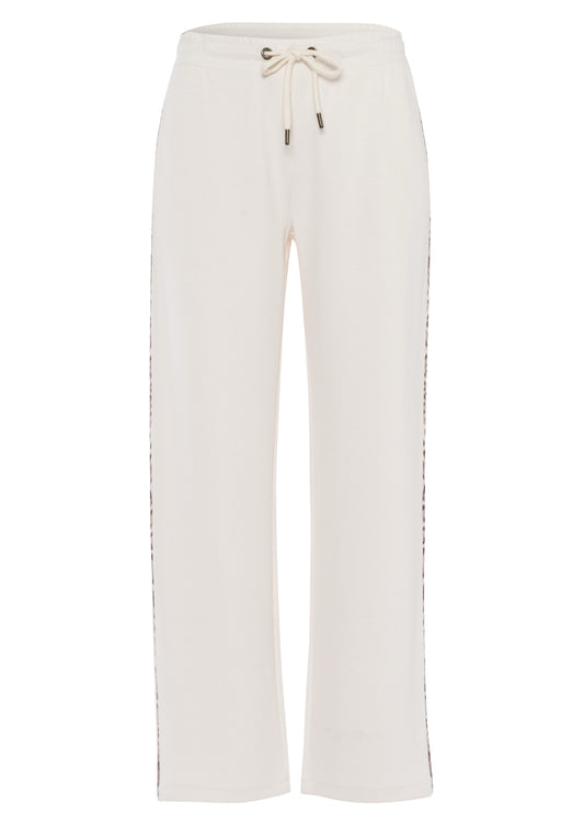 White/ivory Jogger-Style Trousers with Animal Print Trim