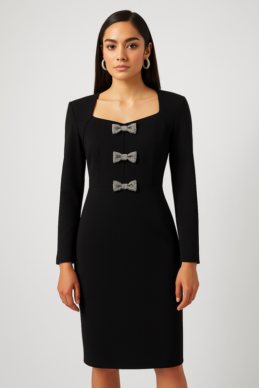 Joseph Ribkoff Sheath Dress With Rhinestone Bows Style 254053