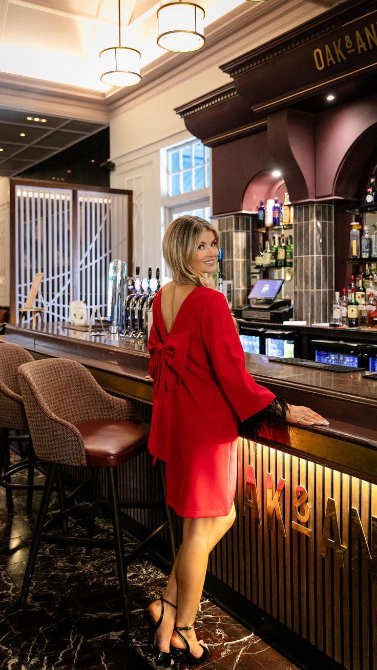 A bold yet timeless piece, this dress turns heads with its rich red hue, clean, shift-style silhouette. The straight cut keeps it effortlessly chic, while the standout detail lies in the sleeves—finished with dramatic black feathered cuffs for a touch of playful glamour. Balanced with a bateau neckline and above-the-knee length, it’s a look that’s equal parts classic and contemporary. Perfect for cocktail hours, weddings, or any event where you want to make an entrance.