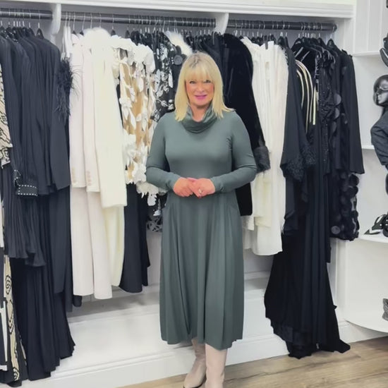 Noen Cowl Neck Pocket Dress – Relaxed A-Line Midi